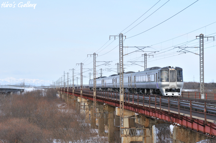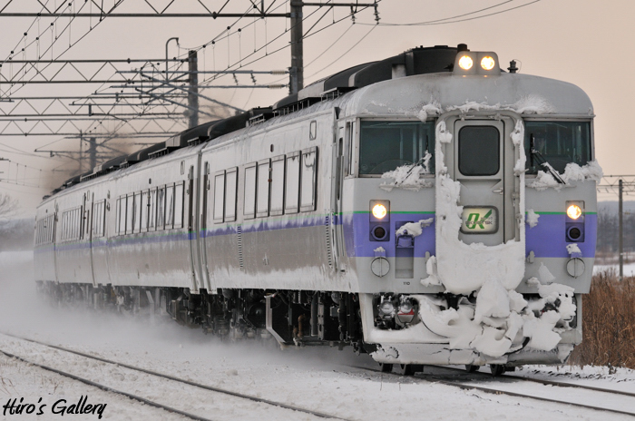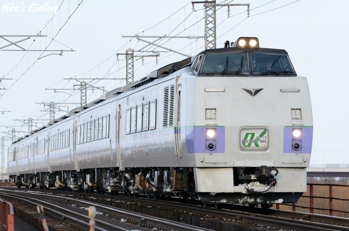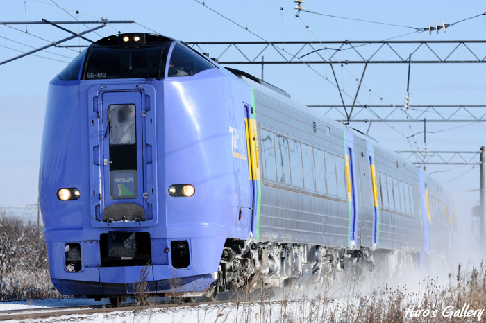 1本前の上り「スーパーカムイ」を撮ったので露出はたぶん大丈夫なものの、ほぼ勘でシャッターを切ります。