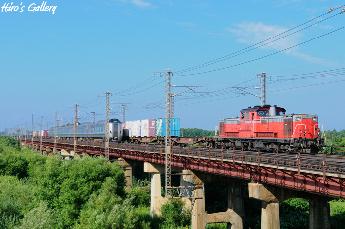 今日からお休みの私は、借り物のD300の試し撮りでもしようと、久しぶりに夕張川鉄橋へ行ってみました。