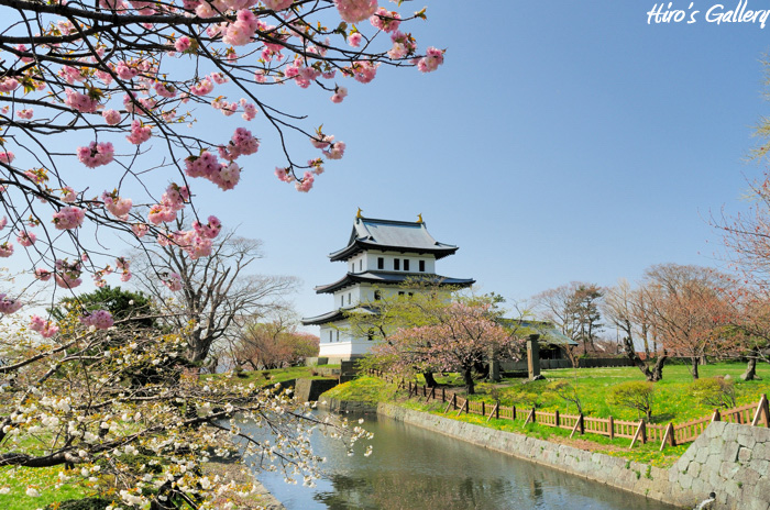 ソメイヨシノは既に終わってしまったのですが、松前の桜は種類が豊富で、この時期からは「南殿」という種類の、ピンク色の濃い桜が咲き始めるはず・・・