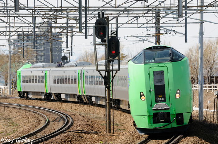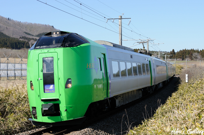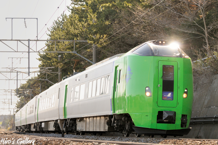 昨年も春に789系函館車の本線試運転があり、なんとなく春の訪れを感じさせる、緑のスーパー特急。