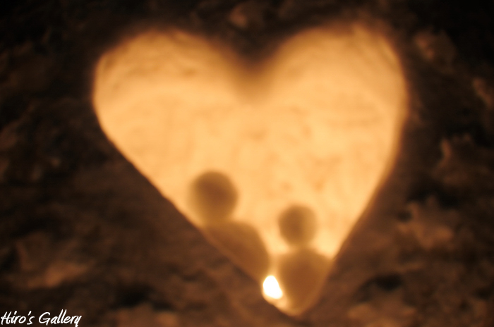 ハート型の中にある雪だるまとローソクなのですが、ハッキリ写しても面白くないので、ピンボケにしてみました。