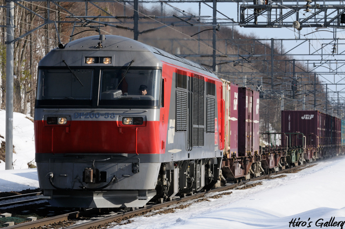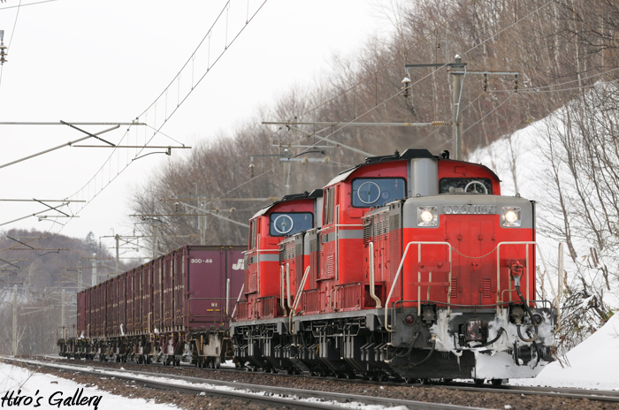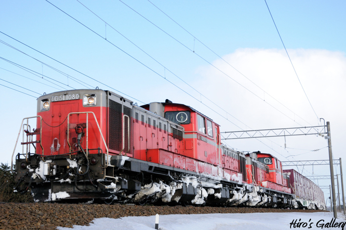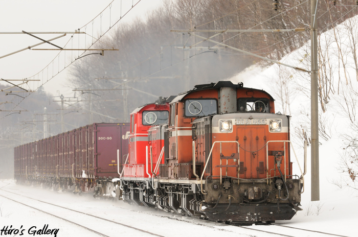 昨日来の雪で爆煙を上げてやってきた複線型DE15-1500番台。