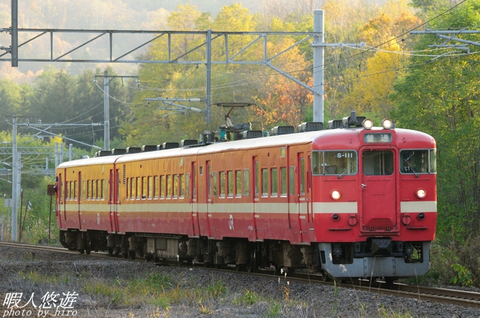 一面秋色の鹿ノ谷-清水沢間を行くキハ40です。