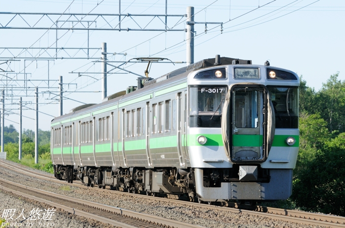 早朝の島松を札幌へと向かう始発列車の721系です。