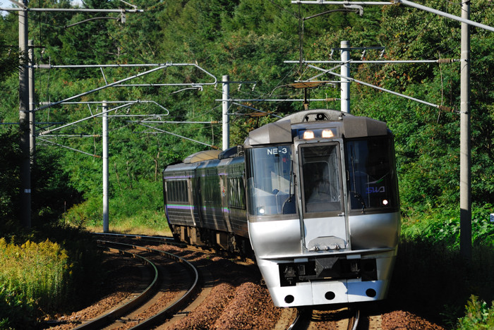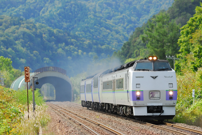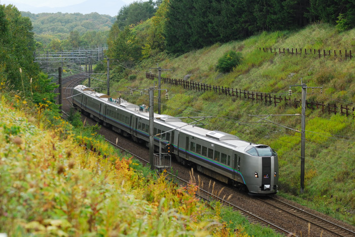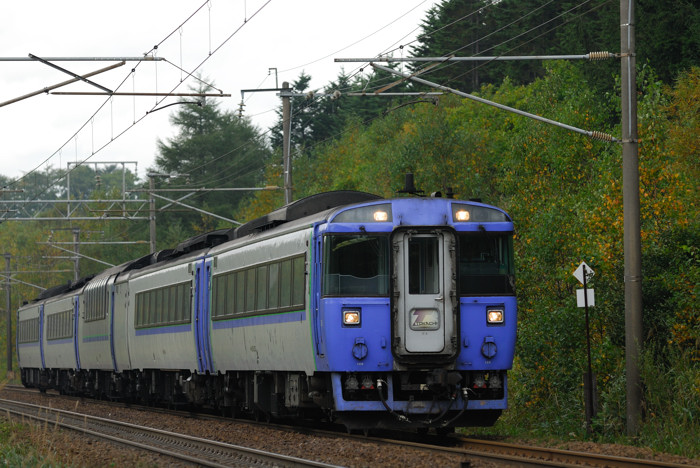 曇りの日なのですが、椴山を走るスーパーカムイです。