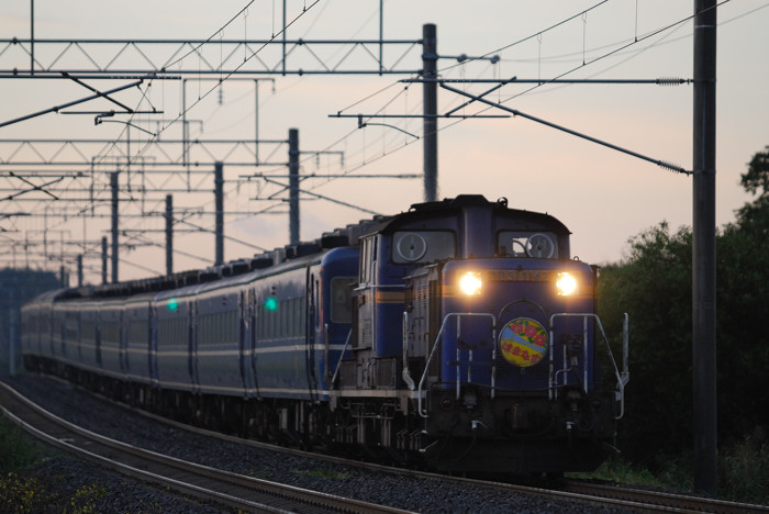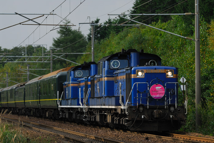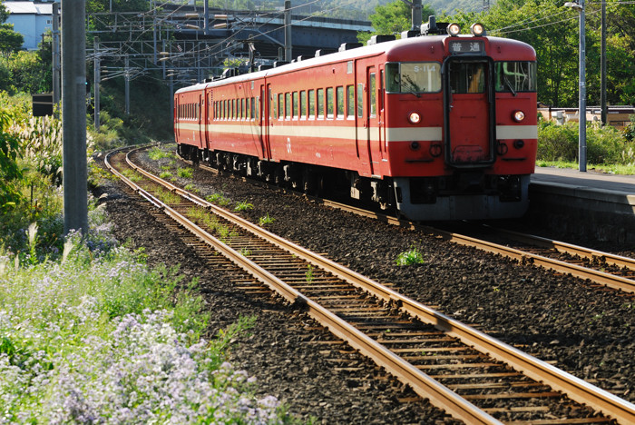 これを撮って帰る途中、普通に走っていたら余市あたりで列車を追い越したようなので、蘭直に寄って流し撮りを。