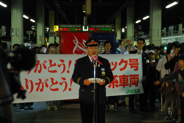 そして大勢の人に見送られて、旭川行き最終が発車しました。