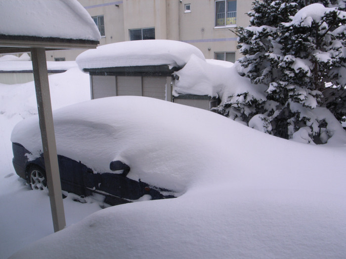 私の車もいつの間にか雪が積もって新幹線N700系みたいな形になっています(爆)