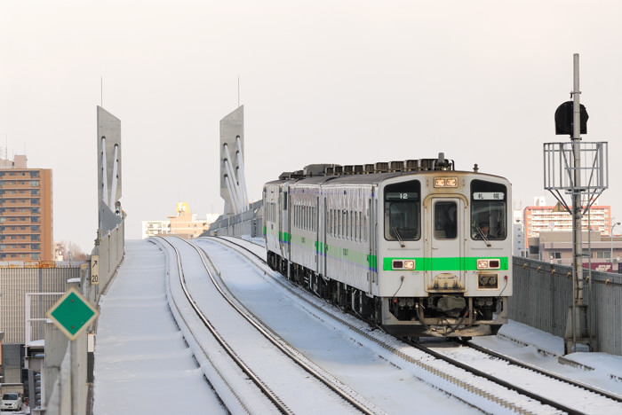 今日、北斗星を撮影している間に、あいの里公園行きキハ201系の出発シーンを目撃したのですが、