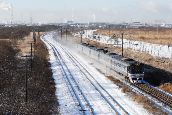 道央屈指の工業都市である苫小牧をバックに札幌へと向かう「すずらん」。