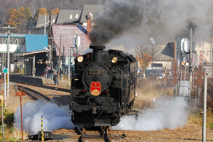 今までアップしていない場所ということで、今日の写真はニセコ駅発車シーンです。